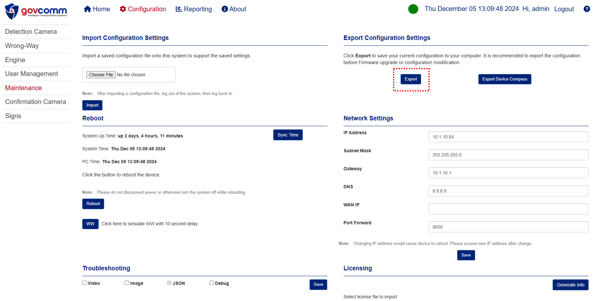 - Navigate to Configuration —> Maintenance and click Import Configuration Settings.
